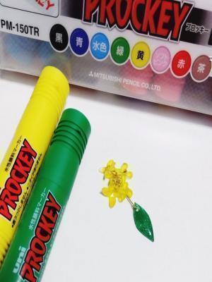 uzura 様 2023/08/21にこっとさまからプロッキー&マッキーセットをお譲りいただきまして☆さっそくプラバンアクセサリーの着色に使わせていただきましたー! まずはピンク色で桜モチーフの簪を(*ノ▽ノ*) まだまだ他のお色もあるので次は何を作ろうかわくわくです。