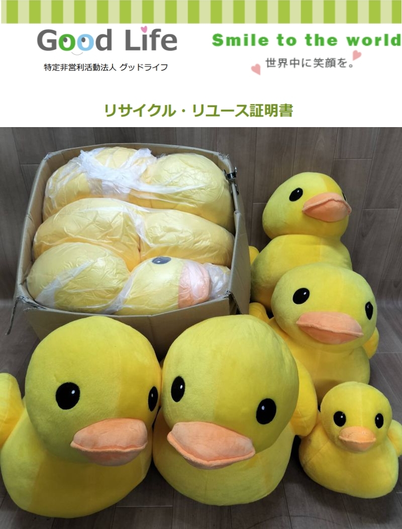 ぬいぐるみを送っていただき、ありがとうございます。トラや、キタキツネ、フラミンゴ、うま、キティちゃん、ディズニーのミッキーマウス、グーフィ、くまのプーさん等、色々なキャラクターたちがあり、状態も良好ですね。 ミッフィーのぬいぐるみ付タオハンガーや、未使用のはがき、持ち手つきのリュックサックもいただきました。それぞれリユースさせていただきますね。