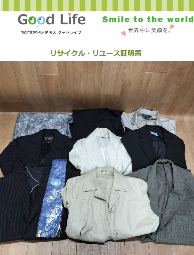 洋服を送っていただき、ありがとうございます。チェック柄や、無地、イラストやロゴ入りなど、色々なデザインのものがあり、まだまだ活用できる状態のものがたくさんありますね。男性用のスニーカーなどの靴や、靴下類などもあり、未使用品などもあります。 たくさんいただきましたので、これから仕分けをして、リユース・リサイクルさせていただきますね。しっかりと次のかたに役立てていただきます。