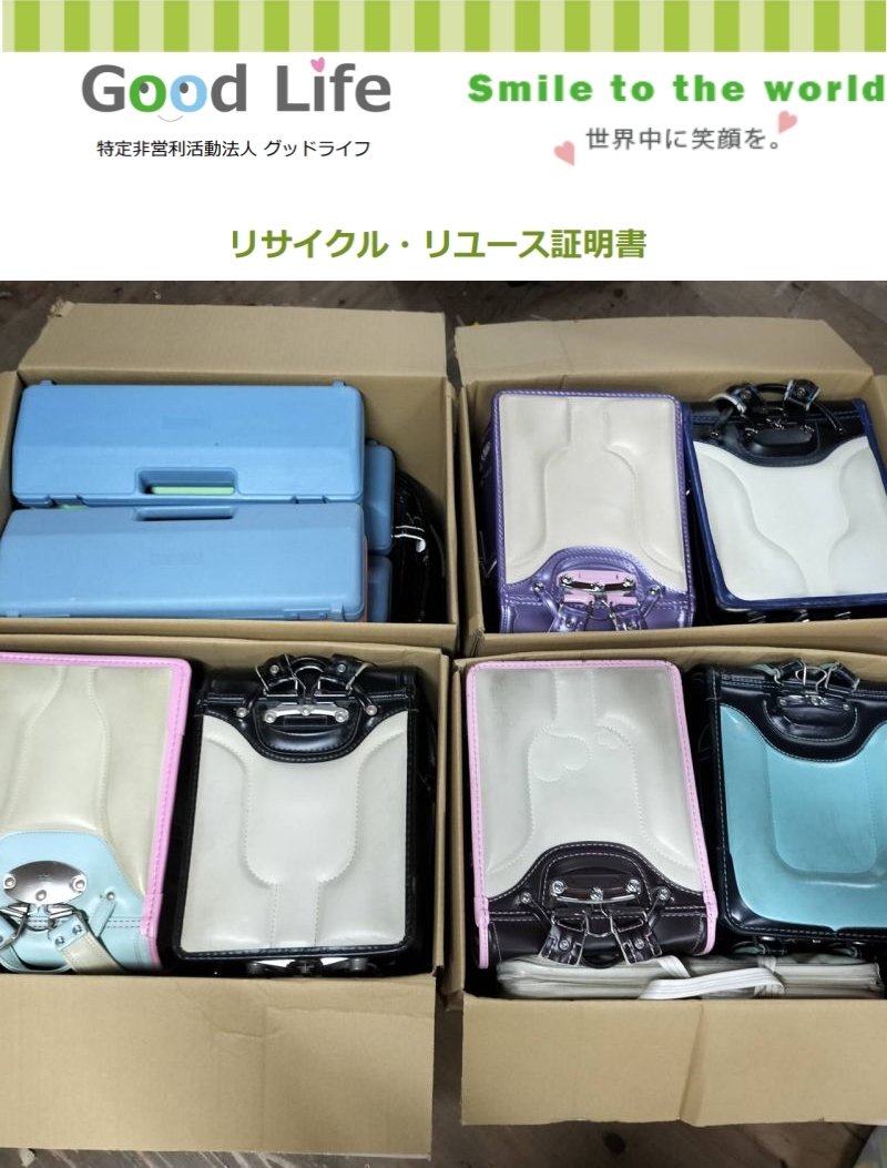 安武校区環境衛生連合会様より、ランドセル 5箱を、セカンドライフに寄付して頂きました。