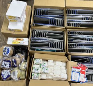 文房具類を送っていただき、ありがとうございます。 色々な種類のファイルや、クリアポケットリフィール、マジックのマッキーの8本セット、ハサミ、パンチ等があり、状態も良好ですね。 その他にも、親子丼などを作るときに使う親子鍋、野菜カッター、お玉などの食器類、エレコムのイヤホンなど色々いただきました。仕分けをして、それぞれリユースさせていただきますね。