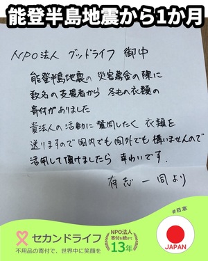馬瀬建設株式会社様より、古着 1箱を、セカンドライフに寄付して頂きました。