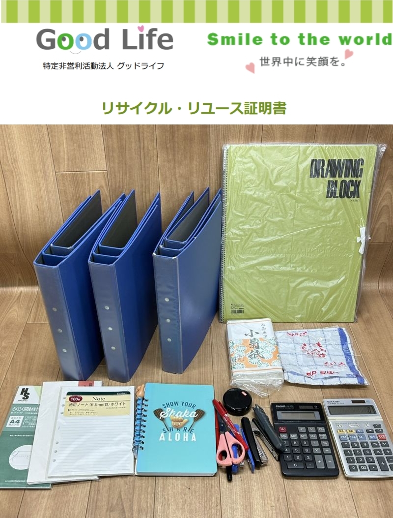 たくさんのファイルを送っていただき、ありがとうございます。 キングファイルなどのメーカーのもので、厚さや仕様など色々なファイルがあるようです。 状態も良好ですね。 その他にも、ノートや祝儀袋などもいただきましたので、生活やお仕事で必要な方にお届けして、活用していただきますね。