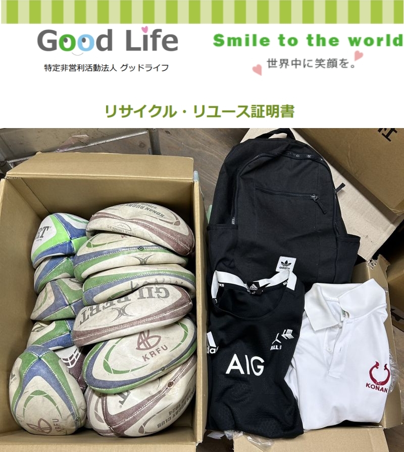 甲南大学体育会ラグビーフットボール部様より、その他 2箱を、セカンドライフに寄付して頂きました。