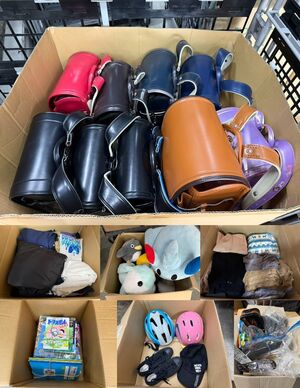 たくさんのかばん類を送っていただき、ありがとうございます。 サンリオのザ ボードビルデュオの絵が描かれている青色のカバンや、ドラえもんの上履き入れ、エンジェルブルーやドラえもんのショルダーバッグ、ポケットモンスターのトートバッグなど、たくさんのバッグ類をいただきました。未使用品ばかりですね。 お子様にお届けして、学校や日常で活用していただきますね。