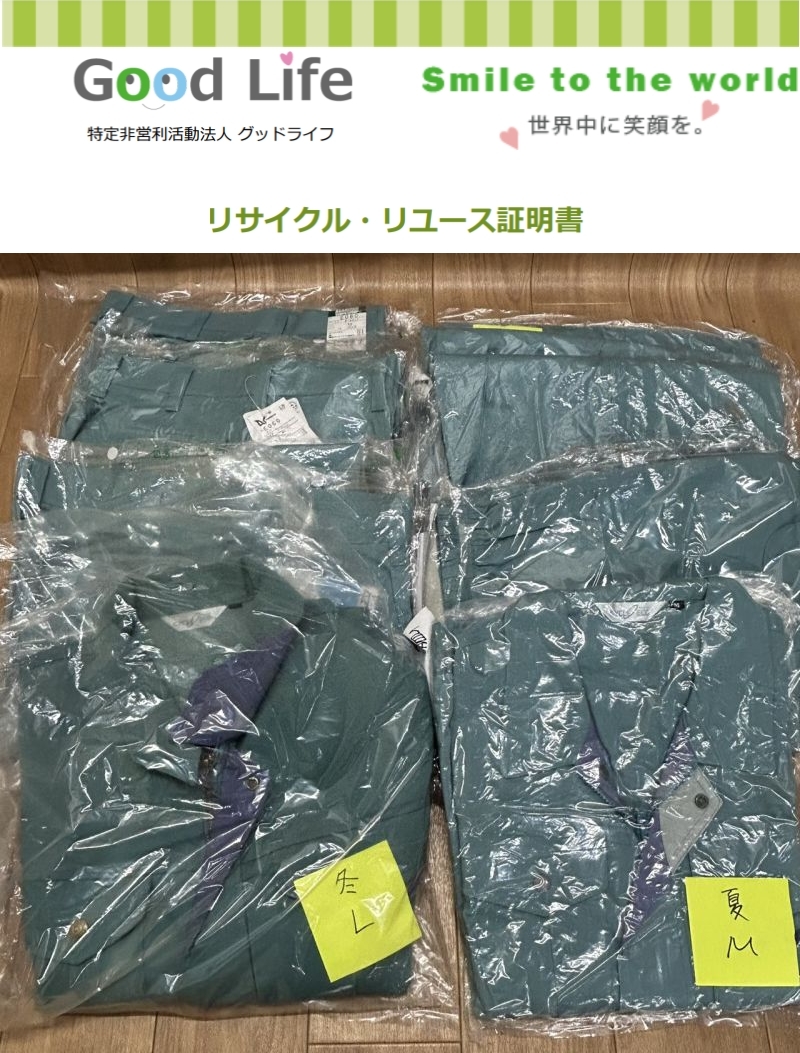 洋服を送っていただき、ありがとうございます。 アウターや、スーツの上着などがあり、状態も良好ですね。 ネクタイや、ケース入りの色々なカフス類もいただきました。 スーツと一緒にお届けして、お仕事用などで役立てていただきますね。 その他にもあったかパックや手袋などいただきましたので、すべてリユースさせていただきますね。