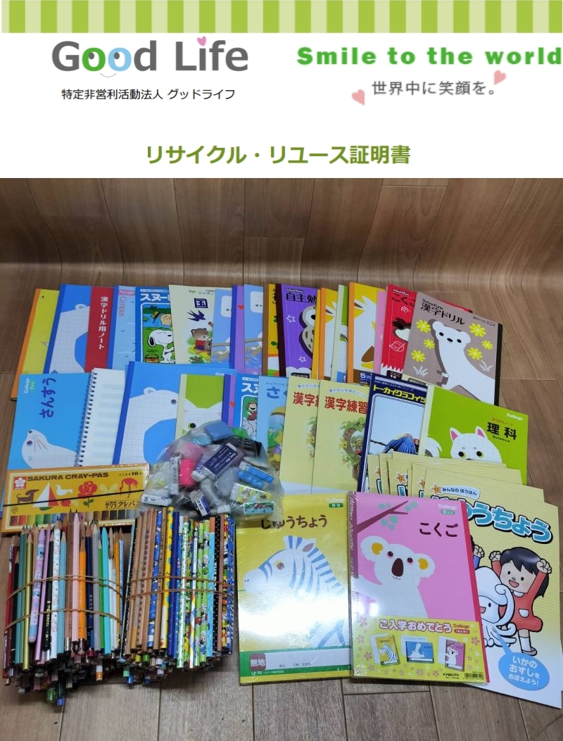 金沢市立長坂台小学校様より、文房具 1箱を、セカンドライフに寄付して頂きました。