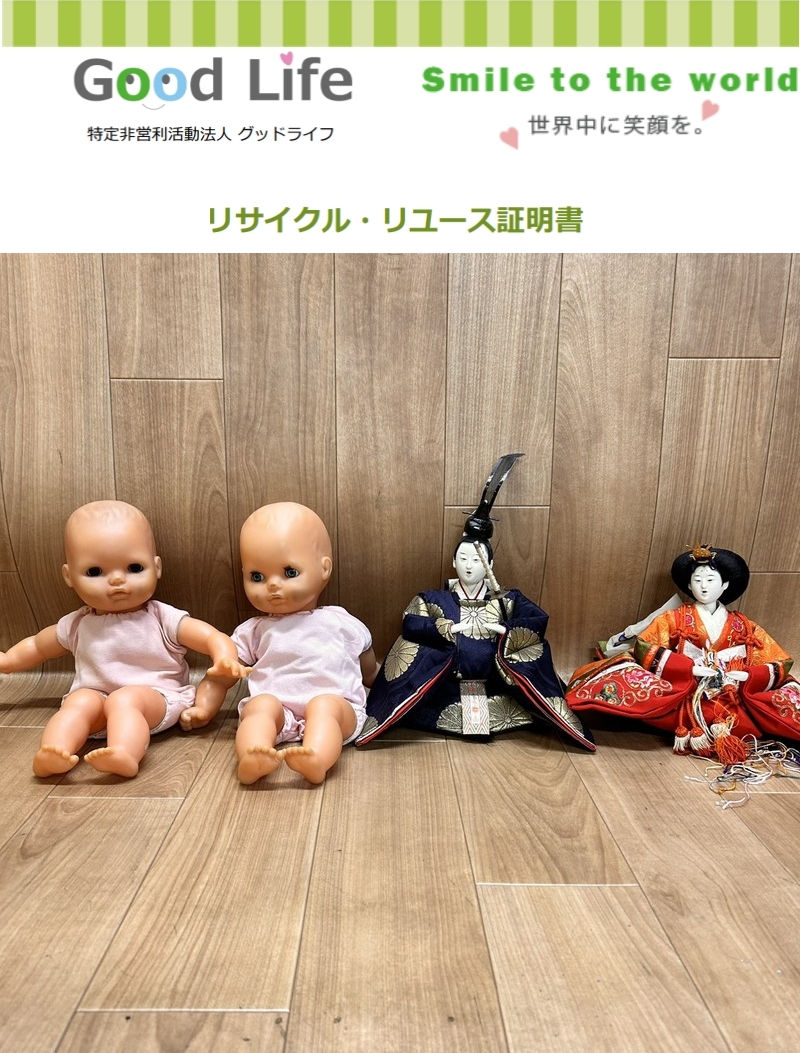 深川北子ども家庭支援センター様より、人形 1箱を、セカンドライフに寄付して頂きました。
