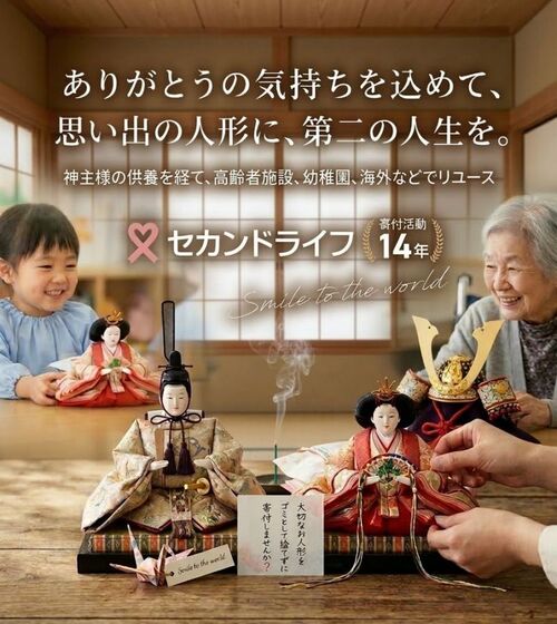 NPO法人運営のセカンドライフは、ひな人形、五月人形をリユースする活動を始めてから、今年で14年目を迎えます。