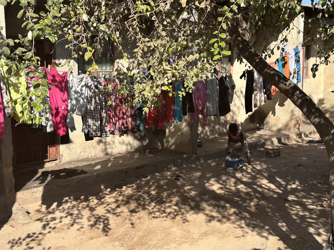 洗濯もすべて手で洗って、手で干します。共同の洗濯場などまで、子供を背負いながら、洗濯物を持ち運びする光景も良く目にします。