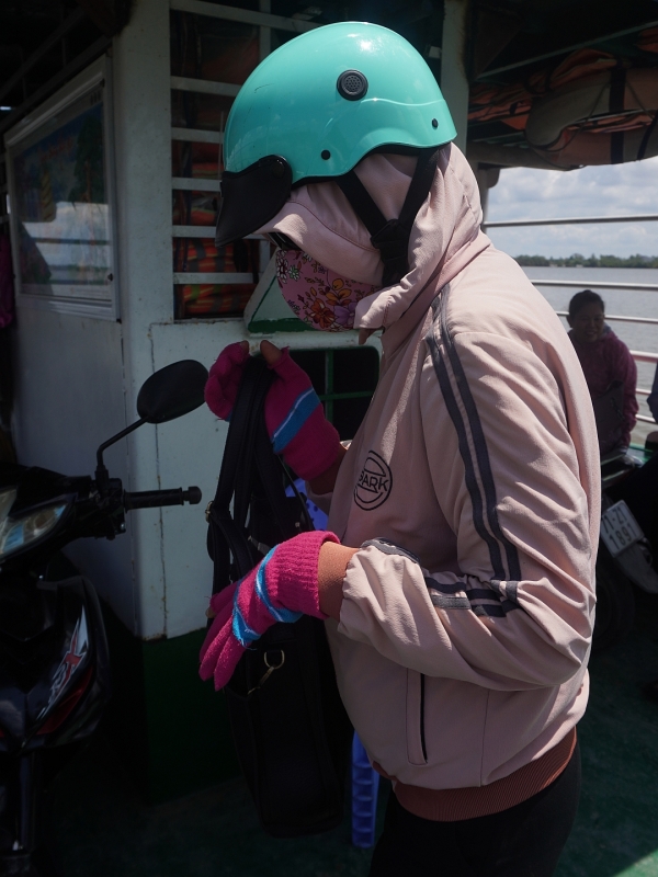 女性は日本と同じく、日焼け防止のためフードをかぶり、マスクとサングラスをつけて、手袋までしている人もよく見かけます。