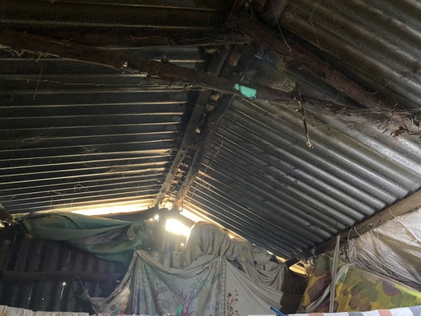 写真のような住居を、月に20ドル前後で借りて住んでいるそうです。穴が開き、雨漏りしていますが、ここでは普通の事です。