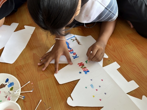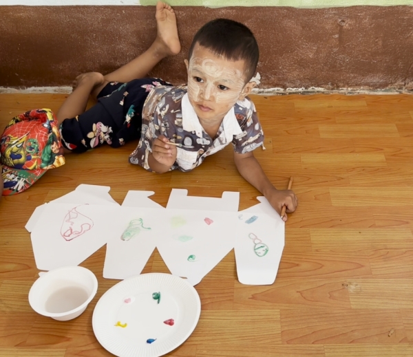 ミャンマーの子供たちは、色を混ぜる事も、絵の具を使う事も良く知っていて、とても上手な子が多い印象でした。