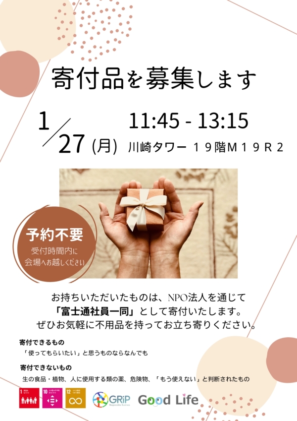 富士通株式会社 ジャパン・グローバルゲートウェイ本部(JGG)様で、2024年夏に行った寄付会が好評で、第2回の寄付会にもご協力させて頂くことになりました。