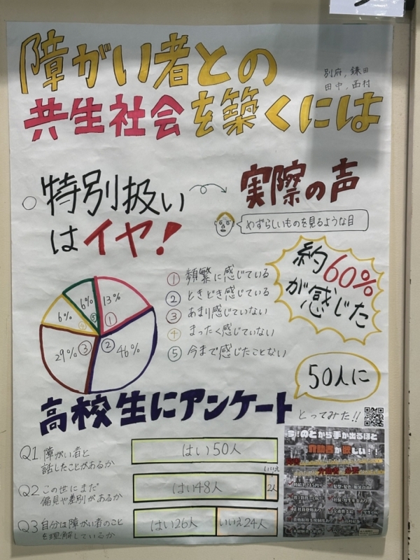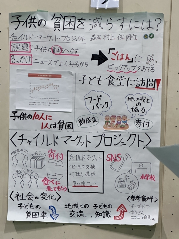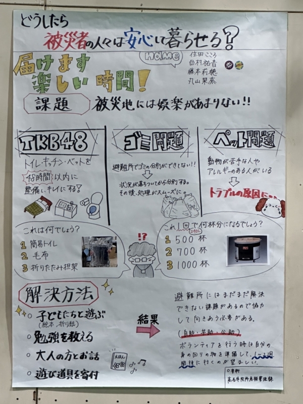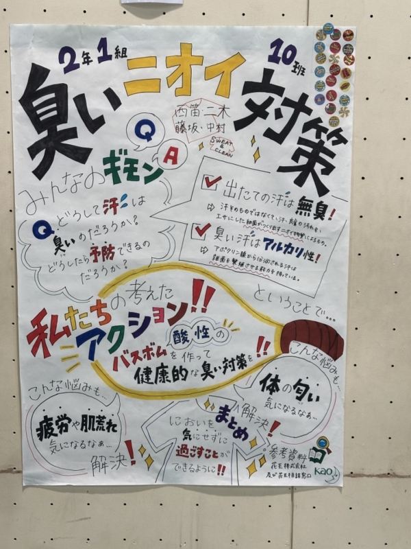 高石高校さんでは、探求学習として、数名のグループ毎に、探求したい事をまとめて、1枚の大きなポスターにまとめるという活動をされています。