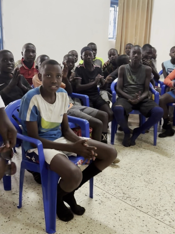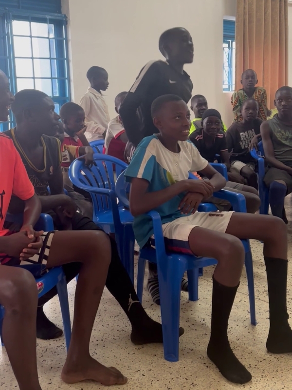 サッカー用品の寄付を行った後、教室に移動して、子供たちと質問タイムを行いました。