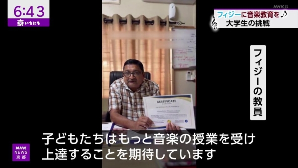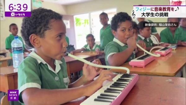 Field Music Academy の主催者として、フィジーへ鍵盤ハーモニカを送る活動を立ち上げた同志社大学3回生の稲山茉祐さんと一緒に、NHKの取材を受けました。