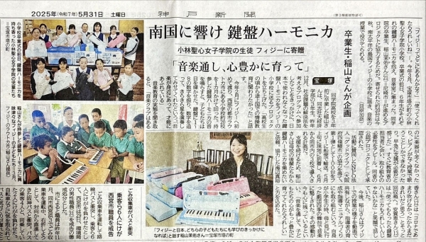 稲山さんの母校である兵庫県の小林聖心女学院よりピアニカの寄贈があり、その寄贈の様子を取材するために、NHK京都と神戸新聞が来られました。