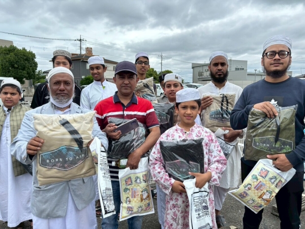 この地域に住むムスリムの人々(イスラム教の人々)と、地域の住民の方が共同で、ごみ拾いを行い、終わった後にはセカンドライフから寄付した洋服を参加者にプレゼントしました。