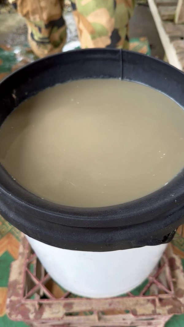 見た目は完全に泥水で、草っぽいにおいがします。