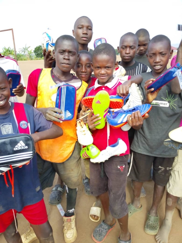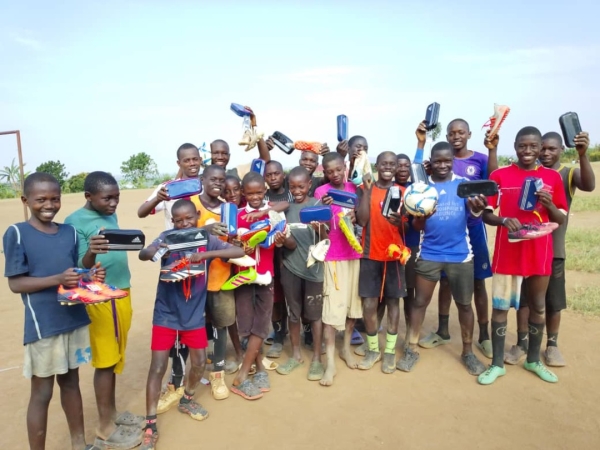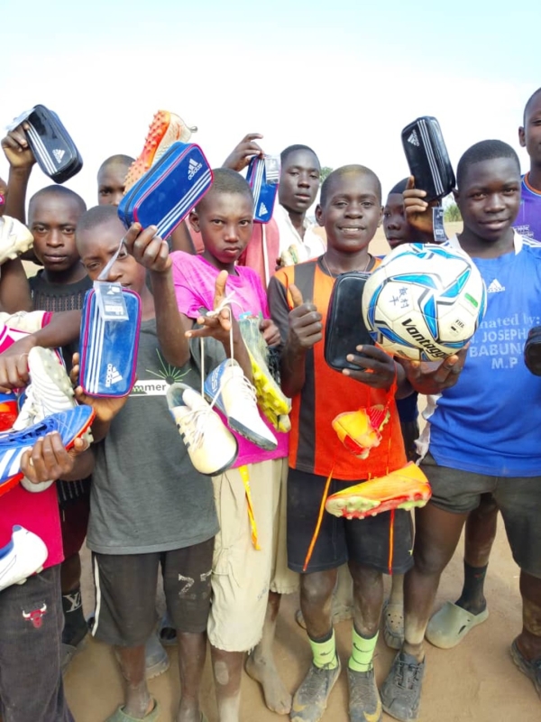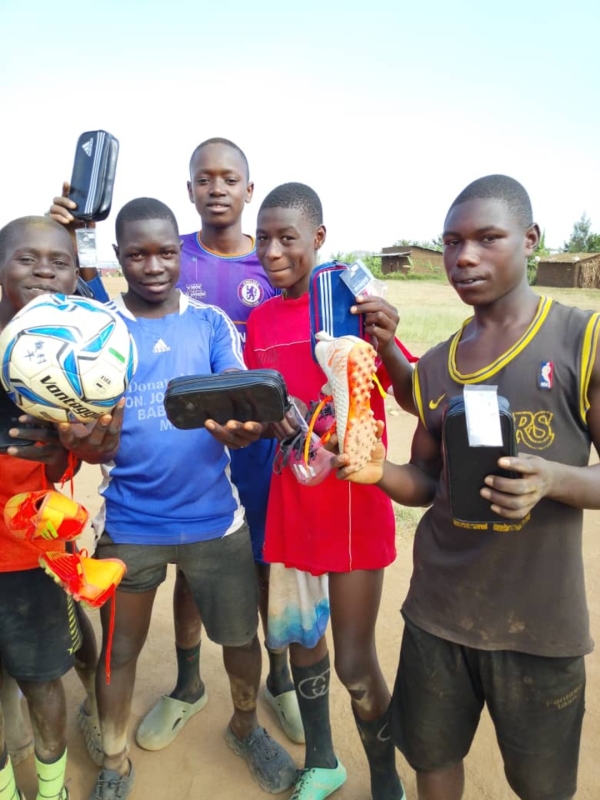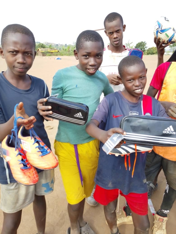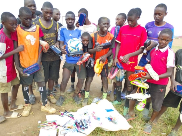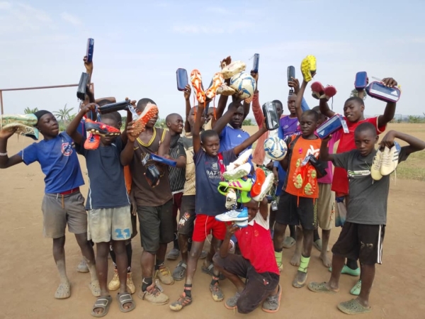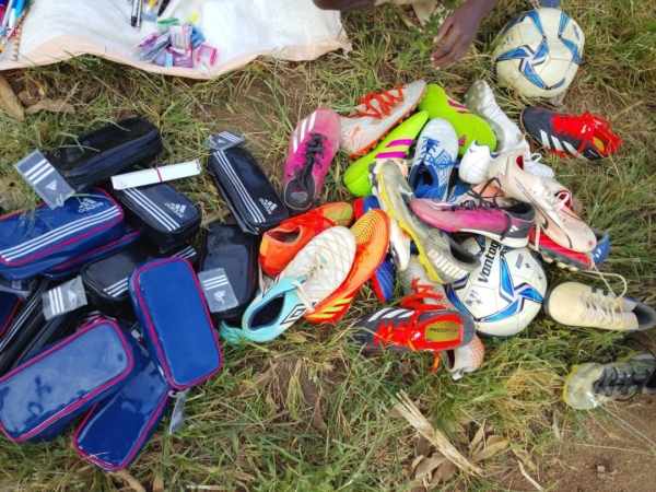寄付の要請を受けて、新しいボール、ユニフォーム、文房具を寄付させて頂きました。寄付品は、チャカ2難民キャンプに、直接届けに行きました。