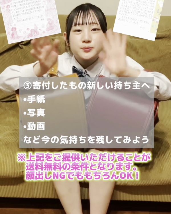 寄付品を受け取った人が、「どんな人が準備してくれたか」がわかるように、以下のいずれか1つをご提供ください。(複数もOK)