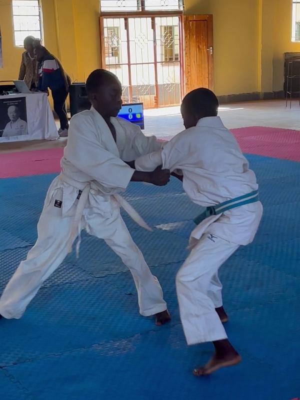 ザンビア国営放送も取材に来た特別な試合の中で、成果を上げた子供たちは、更に柔道に邁進し、将来は、ザンビア軍や警察に就職する道を開き易くなります。