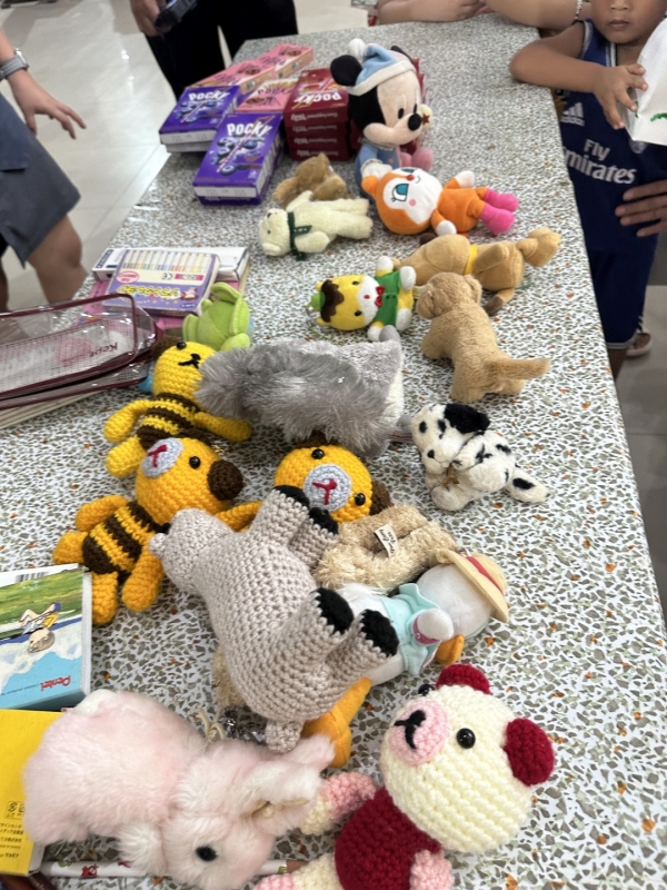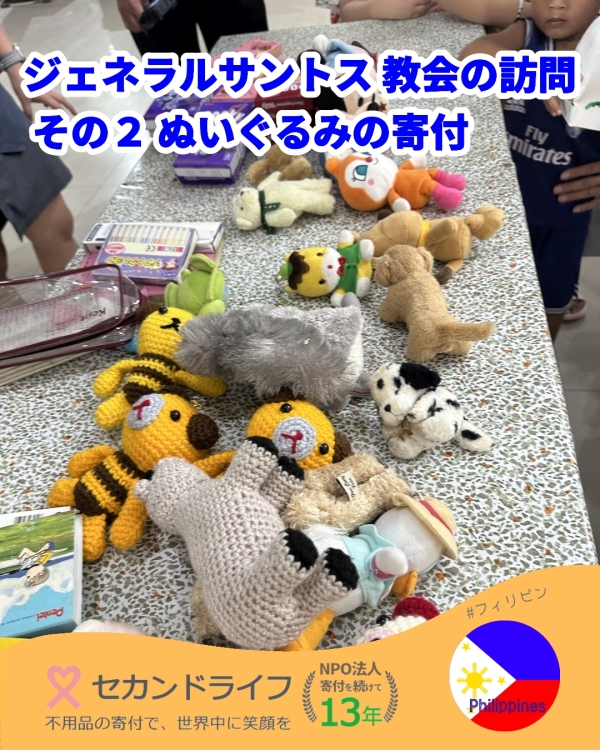 ぬいぐるみは、文房具や色々なものの寄付の際に、緩衝材として持って行くことが多いです。