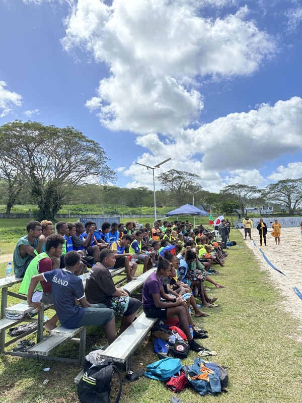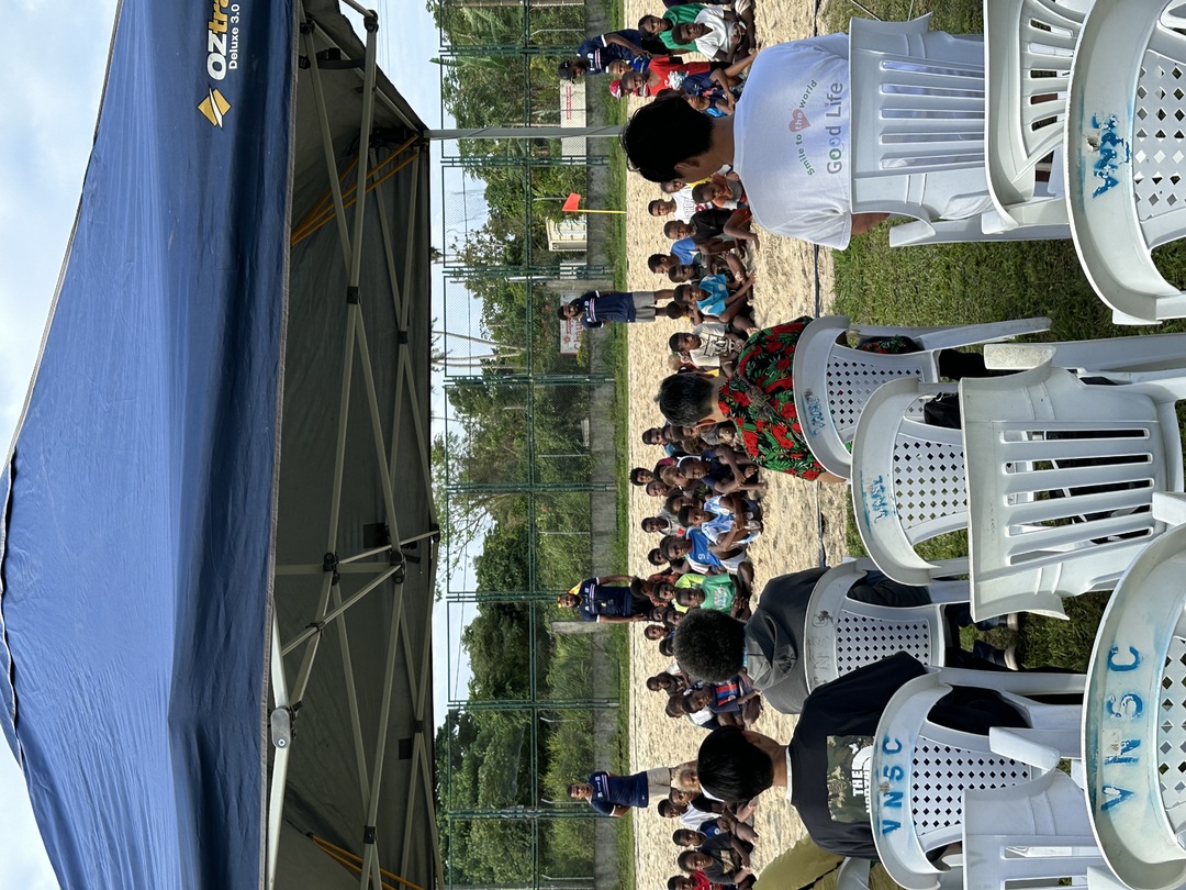 バヌアツ共和国の首都ポートビラにある国際試合も行われるスタジアム「コールマンスタジアム( Korman Stadium )」の中にあるビーチサッカー場で、バヌアツの小中学生の子供たち約70名が参加するビーチサッカー大会を行いました。