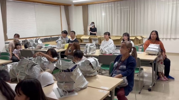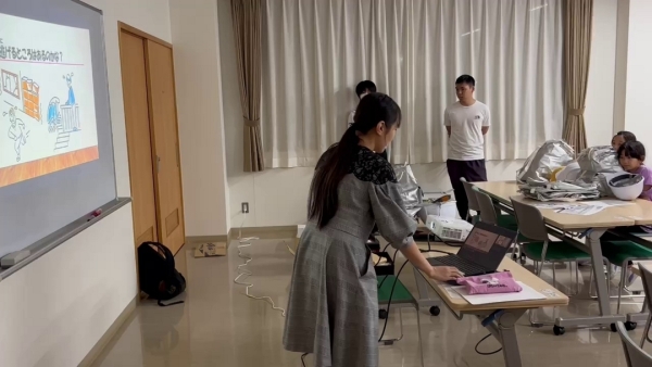 地域の子供たちや親御さんにお越しいただいて、防災に関するプレゼンテーションとお勉強をした後に、防災バッグに非常時に必要になるものを実際に詰め込む体験をしてもらいました。