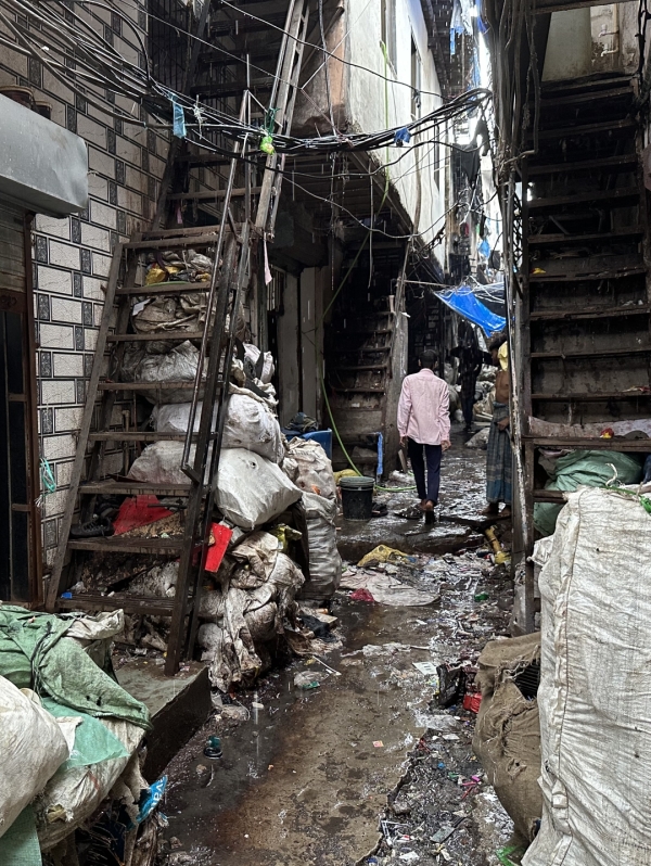 スラムにごみが多い理由の1つが、ごみの集積場になっているためです。多くのスラムでは、ごみを漁る人々の姿を見ることができます。都会で、混ぜられて捨てられたゴミの中から、紙・プラスティック・鉄くずなどの再生可能な資源を拾い出し、まとめて資源問屋にもっていき、kg単位で買い取ってもらっています。