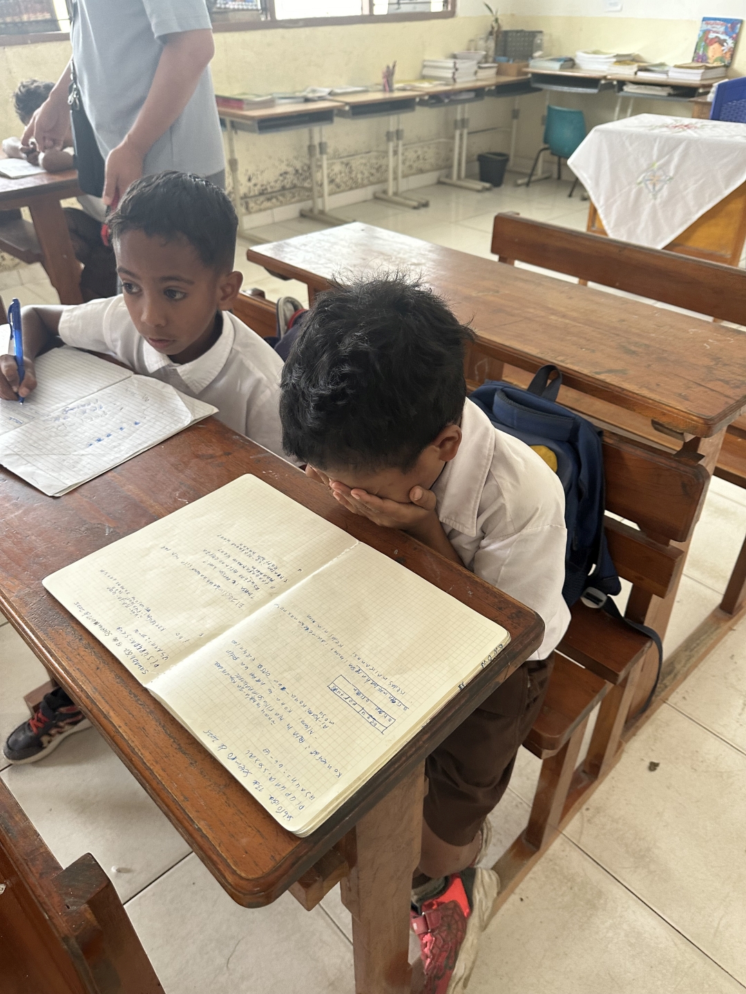 この小学校には、日本人の優秀で熱意を持った先生がおり、四則演算の普及などに向けて、日夜努力されています。