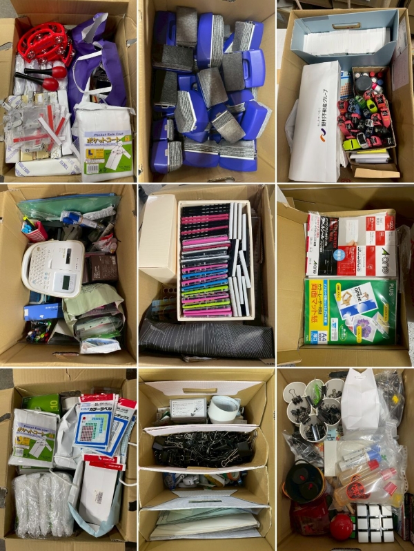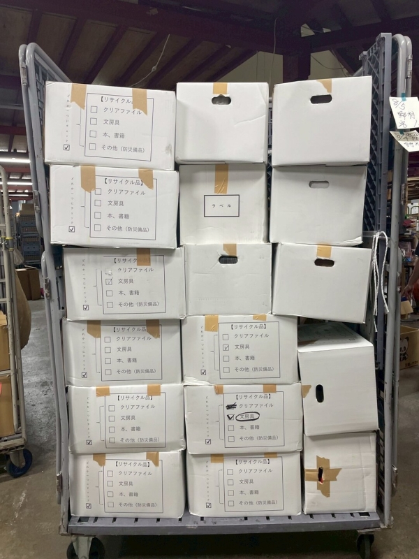 2025年8月までに回収された文房具は、箱詰めされてNPO法人グッドライフに届きました。