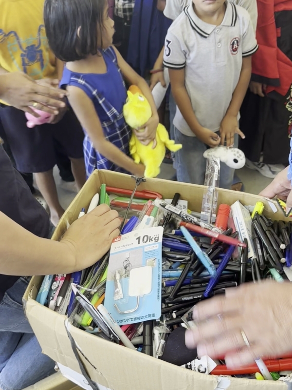 これらの文房具は、ランドセルや古着と共に、フィリピンのミンダナオ州にある複数の小学校に寄付することになりましたので、9月に事前発送させて頂きました。