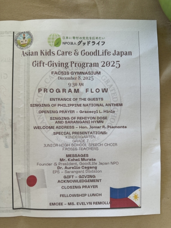 フィリピンでは、大多数がキリスト教徒であり、キリスト教的なイベントで寄付者をもてなしてくれる文化があります。