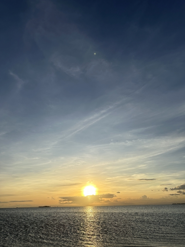 海も空気も綺麗な島での朝日と夕日、夜は当然のように、綺麗な星を見る事ができて、豊かで美しい自然にとても感動しました。