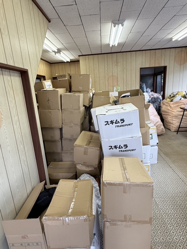 防災用品の寄付に関しては、10tトラック2台分ほどの量がありました。