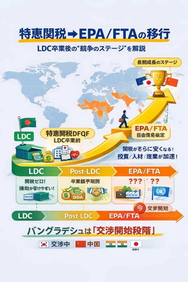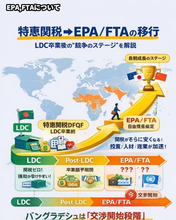 LDC()を卒業した国や、長期的な成長を目指す国にとっては、EPAのほうが将来につながる協定と言えます。